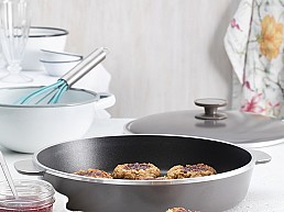 Esta sartén tiene el tamaño ideal para realizar grandes porciones, sobre todo para recetas de tartas, tortillas, verduras rellenas y paellas. Su diseño facilita los desmoldes y las asas fijas ayudan a manejar el producto con mayor seguridad durante las cocciones. Complementando esta sartén con la cacerola con asas de 24cm y la bifera con asas, tendrá la oportunidad de contar con piezas de cocina para preparaciones importantes de hasta 5 o 6 adultos