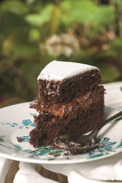 Cortamos el bizcochuelo en capas, humedecemos con almíbar y rellenamos con dulce de leche.