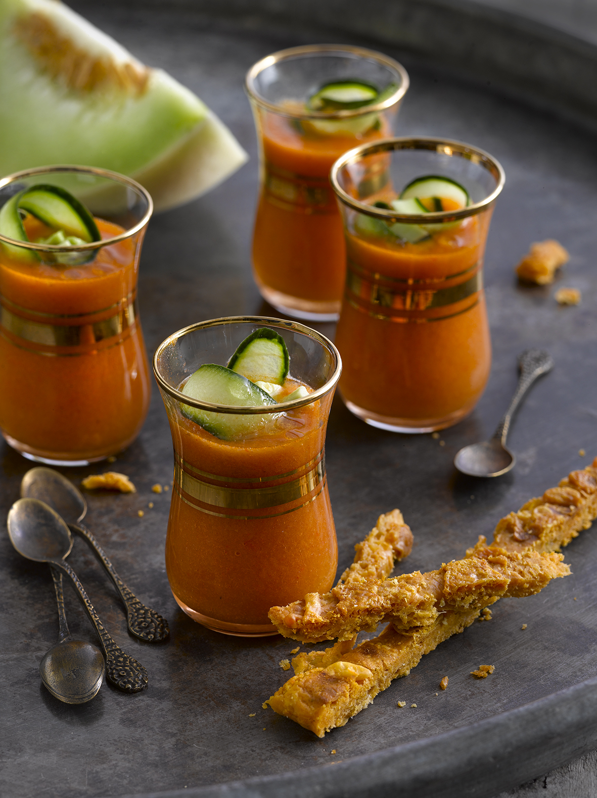 Tomar en vasos con ramitas de apio y crocantes de queso.