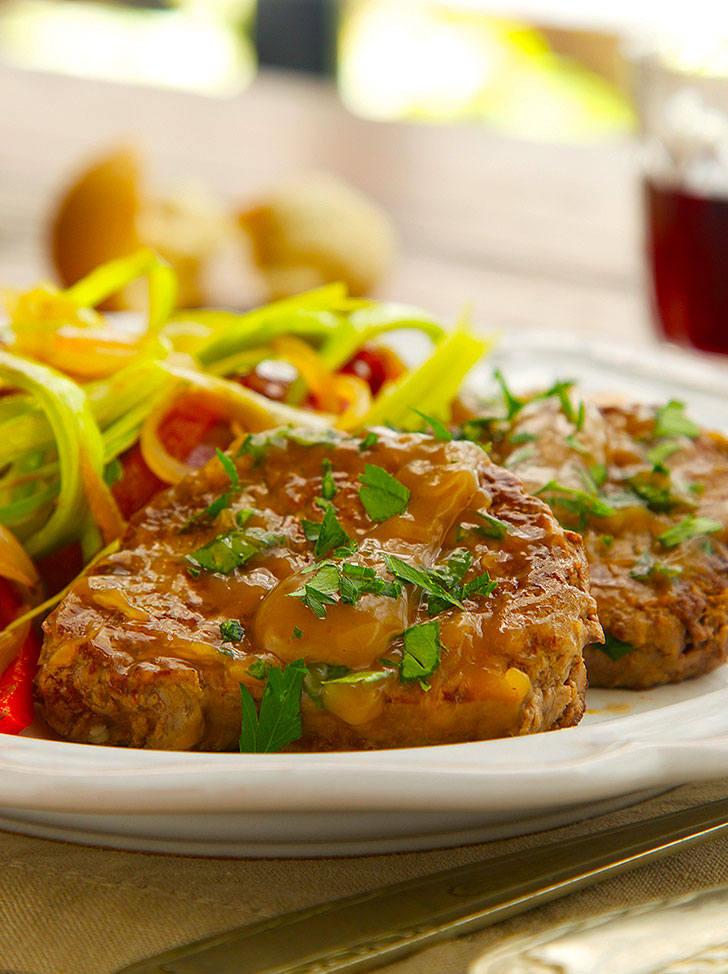 • Servimos la carne con la guarnición de verduras.