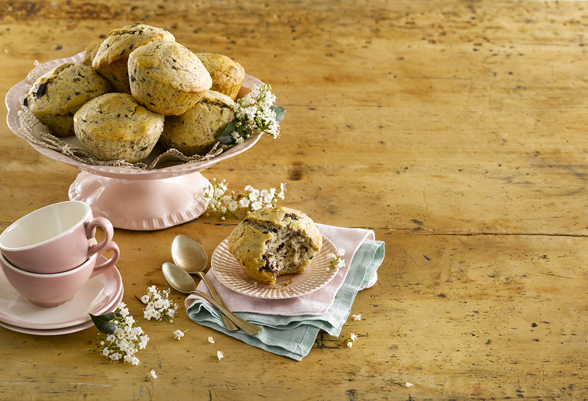 En un bol colocamos los secos. Incorporamos la banana, la miel, el aceite, el agua y la esencia. Mezclamos hasta lograr una preparación homogénea