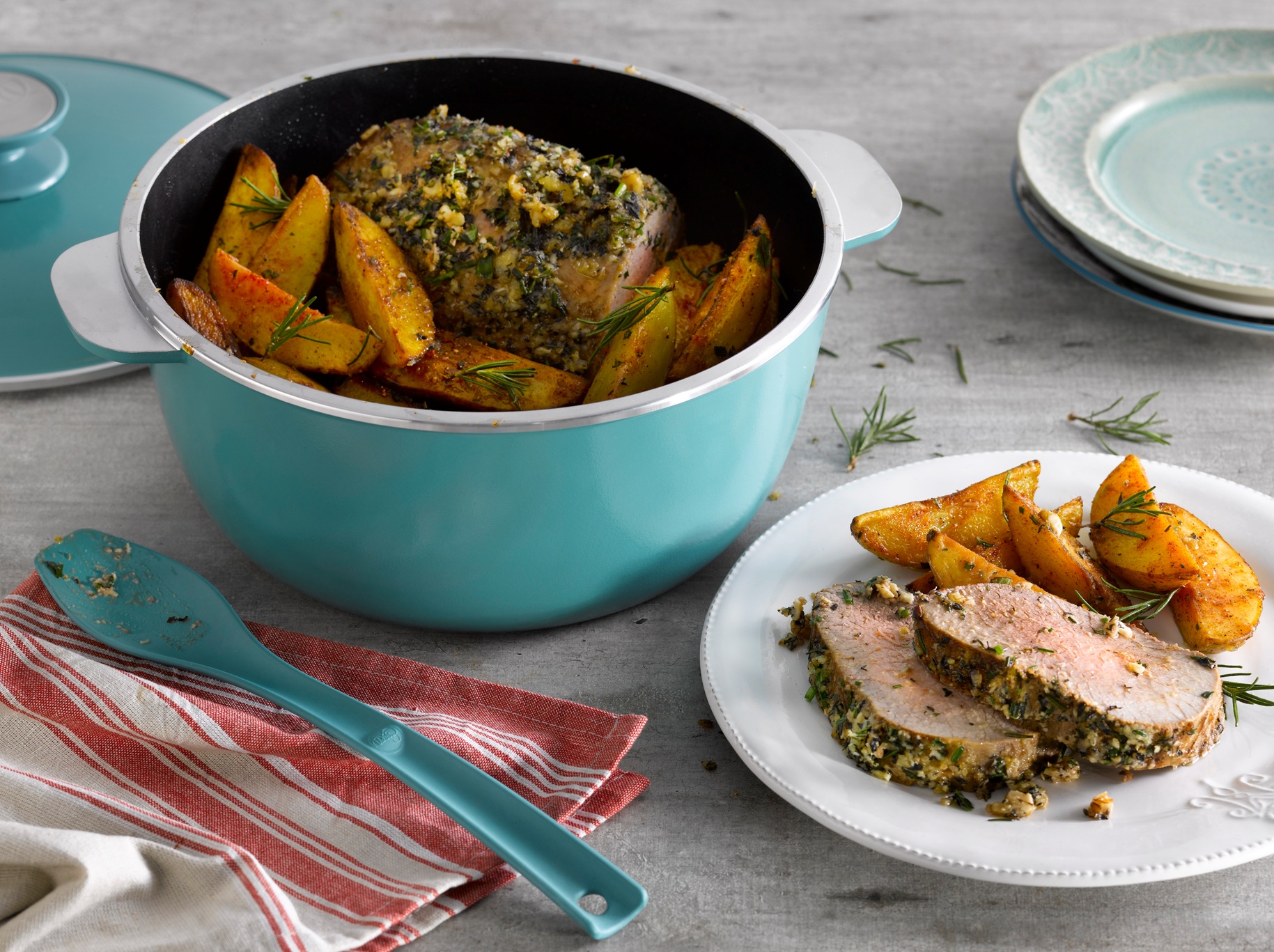 Ubicamos en la cacerola y sellamos hasta dorar. Damos vuelta y colocamos las papas, sal, tomillo y continuamos a fuego mínimo hasta finalizar la cocción.