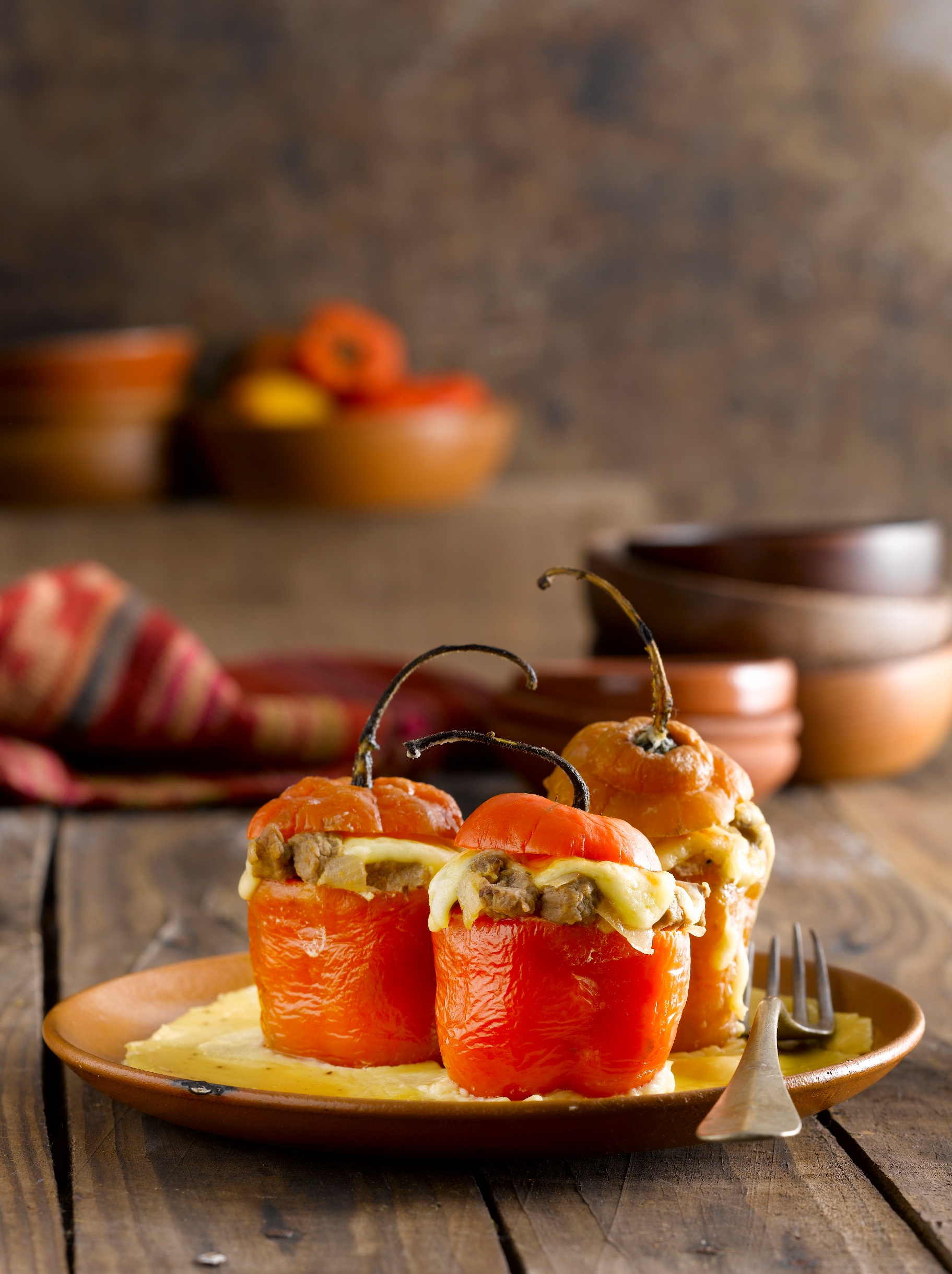 • Sobre cada rocoto colocamos una lámina gruesa de queso y sobre éste la tapa del rocoto.