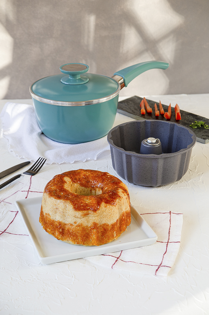 Colocamos el resto de la mozzarella en el savarín y el rollo de masa. Terminamos con un poco más mozzarella.
