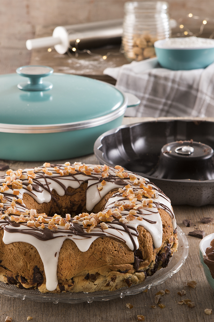 Decorar con el glasé, chocolate y cascaritas de naranja.