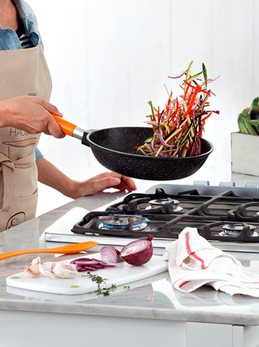• Agregamos todas las verduras cortadas en juliana, salamos y bajamos a fuego mínimo.