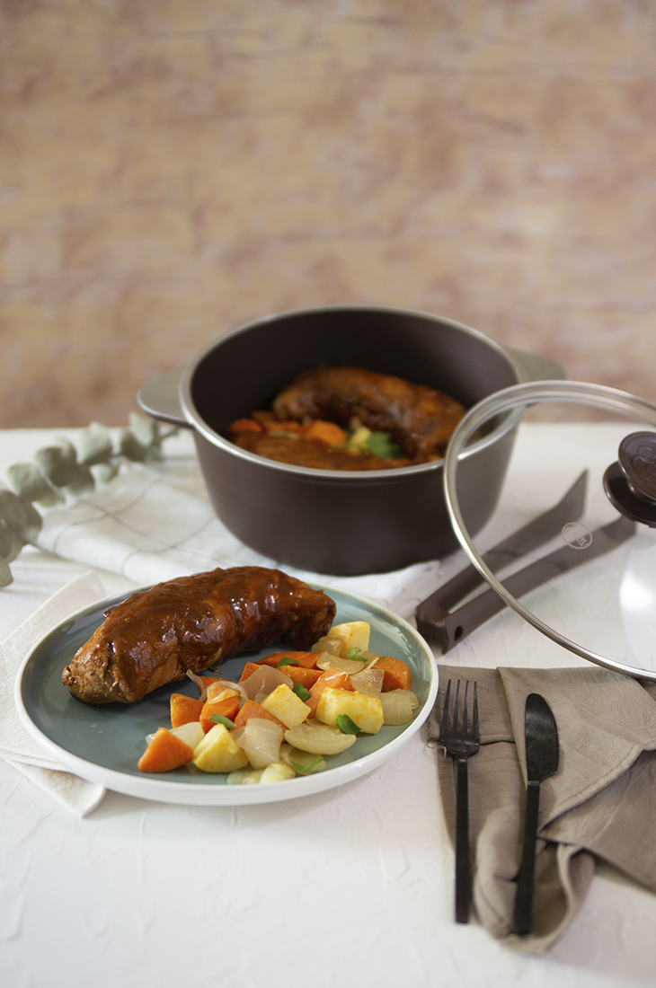 Precalentamos la Cacerola a fuego máximo 5’. Agregamos aceite, bajamos el fuego a medio y doramos los solomillos de ambos lados.