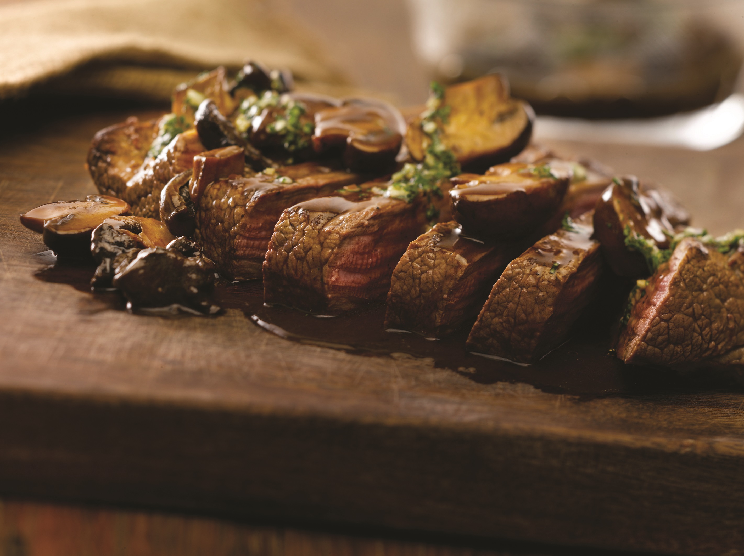 ·             Luego incorporamos la fécula disuelta en el vino, los hongos (hidratados en agua caliente y fileteados) y los champiñones frescos. Condimentamos. Continuamos a fuego medio en la cacerola destapada, hasta que se evapore el alcohol.