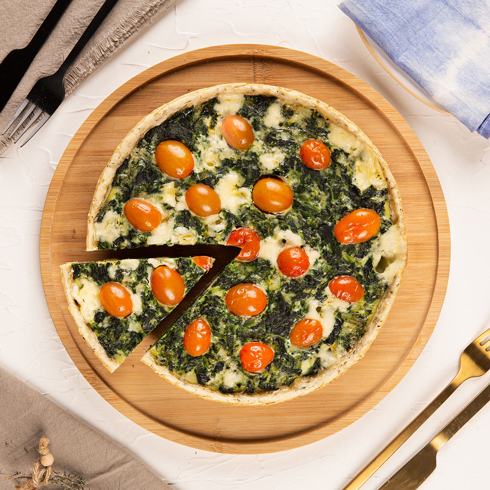 • En un bol mezclamos la espinaca cortada en tiras finas, la cebolla de verdeo, el puerro, el queso rallado, la fécula, los huevos, la crema y los daditos de queso fresco.  Condimentamos.