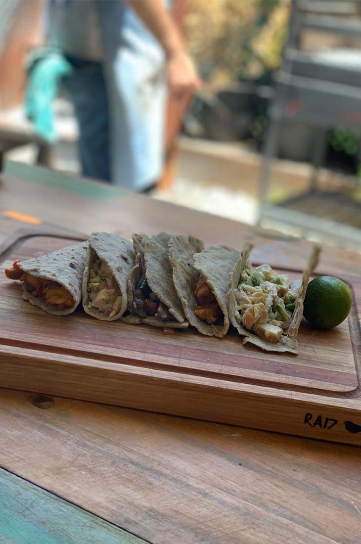 Espolvoreamos la mesada con harina de arroz, hacemos un rollo con la masa y cortamos porciones para estirar círculos (del diámetro que quieras armar los wraps). Ponemos a calentar la Sartén y cocinamos vuelta y vuelta.
