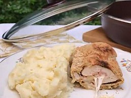 Milanesa rellena con jamón y queso con puré