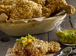 Alitas con crocante de mani, cilantro y limon