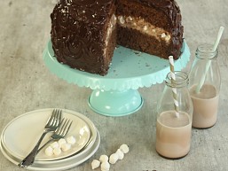 Torta Húmeda con mascarpone, cerezas e higos frescos